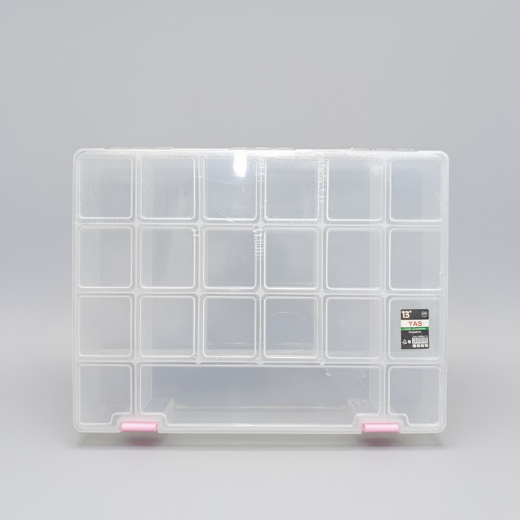این محصول از جنس پلاستیک شفاف و مقاوم ساخته شده است تا محتویات داخل جعبه بدون نیاز به باز کردن قابل مشاهده باشد. دارای ۲۱ خانه مجزا است که هر بخش برای تفکیک و دستهبندی متریالهای ظریف مانند سنگ، نگین، مهره یا دکمه طراحی شده. ابعاد تقریبی جعبه ۲۵ سانتیمتر طول، ۲۰ سانتیمتر عرض و ۴ سانتیمتر ارتفاع دارد. دو قفل محکم پلاستیکی در قسمت پایین، از باز شدن ناگهانی درب و ریختن محتویات جلوگیری میکند. ساختار سبک، مقاوم در برابر فشار و قابل حمل بودن از دیگر ویژگیهای کلیدی این محصول است.